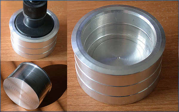 Aluminum Inkwell - 1.5"x2.25" - I machined this ink bottle holder because I was tired of knocking my ink over when I was working on a drawing. It works great as a heavy base.