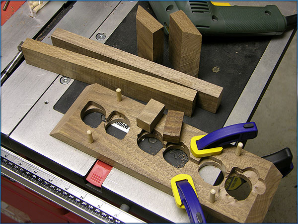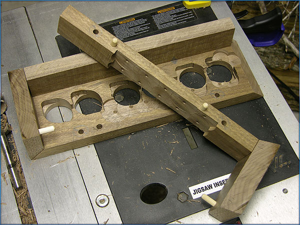 The finished pieces, drilled & dowelled, ready for glue up and clamping.
