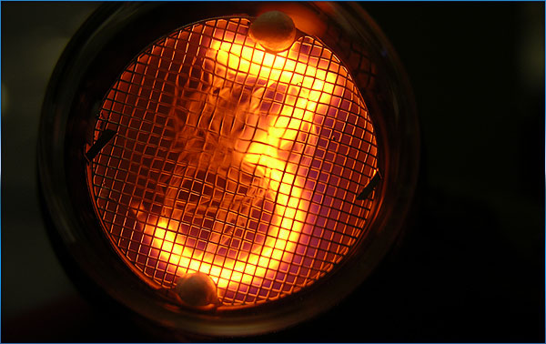 My first lit nixie tube! Once I wired up the high voltage and crossed my fingers, IT LIVES!