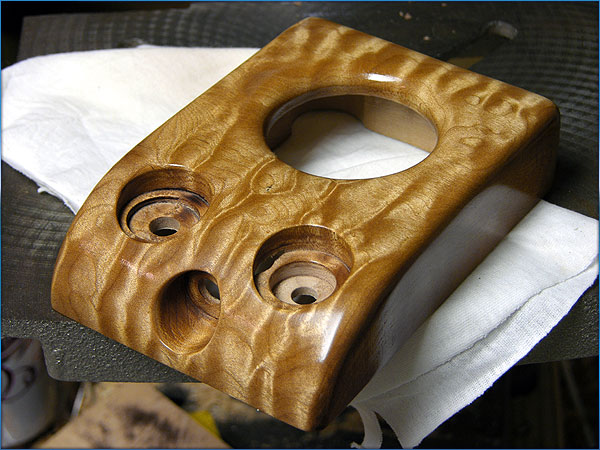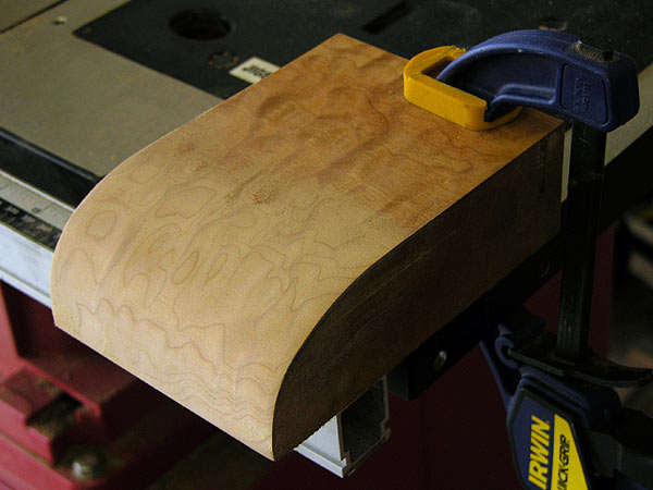 The block of quilted maple I will use for the housing.
