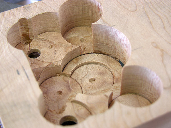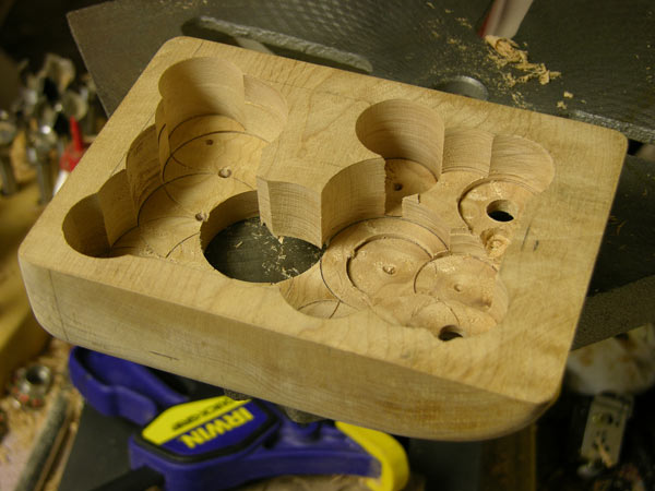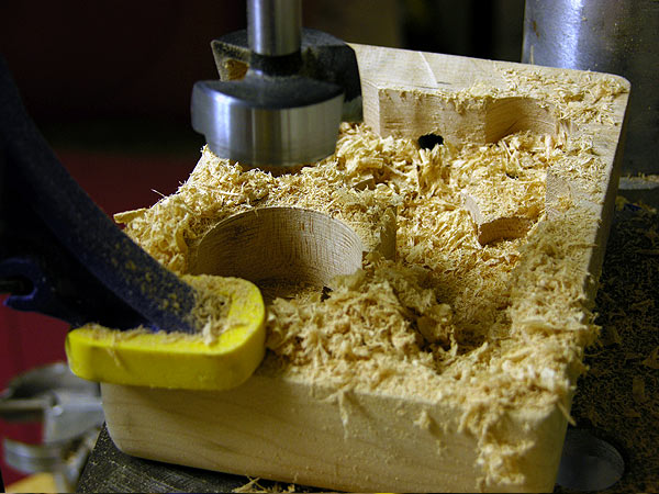 Using the forstner bit to open up the insides.